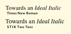 The new design is fantastic – it can be described as "the better Times New Roman". It's somewhat similar to Times, but with a touch of Fleischmann. Its lower contrast, enlarged x-height and less inclined italic all contribute to superb(!) readability, in both web and print. STIX Text is a neutral, non-invasive text face for continuous reading.