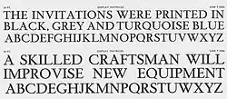 An elegant titling caps design, quite different from Times New Roman with a Caslon-style A (with a serif at top left of the letter, suggesting a stroke written with a quill) and old-style C and W; Tracy suggests Monotype's previous Poliphilus design as an influence.[70] Named after Hever Castle, the home of the Times' owner Lord Astor and designed early on, it was used by the Times for headings in the lighter sections such as society pages, arts and fashion.[66][71] It has not been digitised.
