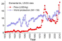 - ^ a b Carlin, James F. Jr. (1998). "Significant events affecting tin prices since 1958" (PDF). USGS. Archived from the original (PDF) on 2011-10-28.