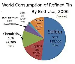 {{cite book}}: ISBN / Date incompatibility (help) - ^ Panel On Tin, National Research Council (U.S.). Committee on Technical Aspects of Critical and Strategic Materials (1970). Trends in the use of tin. pp. 10–22. Archived from the original on 2016-05-22.