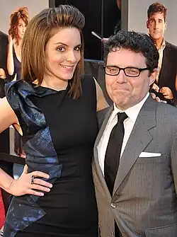 Fey and former SNL castmate Amy Poehler starred in the 2008 comedy Baby Mama. The film was written and directed by Michael McCullers. The plot concerns Kate (Fey), a business woman, who wants a child but, discovering she has only a million-to-one chance of getting pregnant, decides to find a surrogate: Angie (Poehler), an obnoxious schemer.[98] Baby Mama received mixed reviews, but critics enjoyed Fey's performance.[99][100] Todd McCarthy of Variety wrote: "Fey is a delight to watch throughout. Able to convey Kate's intentions and feelings through the simple looks and inflections, she never melodramatizes her situation; nor does her efficient, perfectionist side become overbearing."[101] The movie grossed over US$64 million at the box office.[93]
