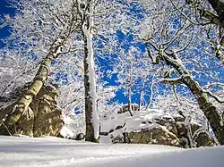 Snow at the Dajti National Park. It generally melts quickly in the region.[58]