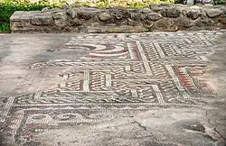 The area of Tirana has been inhabited by humans since prehistoric times with the earliest recognised reference found at the Cave of Pëllumbas belonging to the Palaeolithic period. Illyrians were the first population of the area and formed most likely the core of the Illyrian kingdom of the Taulantii, which in classical antiquity was centered in the hinterland of Epidamnus.[18] When the Romans arrived in Illyria after their victory of the Illyrian Wars, they populated and integrated the area into their empire under the political control of the city of Rome. The oldest surviving discovery from this period is a Roman house dating to the 3rd century, which was transformed into an aisleless church with a mosaic floor. A castle, possibly known as Tirkan, was built by the Byzantine Emperor Justinian I between the 4th and 6th century and later restored by Ahmed Pasha Toptani in the 18th century.[19]