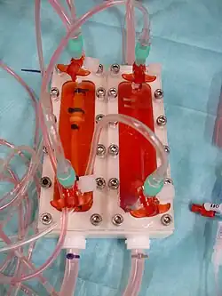 - ^ a b Humes HD, Buffington D, Westover AJ, Roy S, Fissell WH (March 2014). "The bioartificial kidney: current status and future promise". Pediatric Nephrology. 29 (3): 343–51. doi:10.1007/s00467-013-2467-y. PMID 23619508. S2CID 19376597.