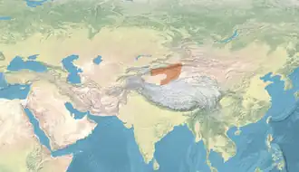 In the late 5th century AD the Hephthalites, based in Tokharistan (Bactria), expanded eastward through the Pamir Mountains, which are comparatively easy to cross, as did the Kushans before them, due to the presence of convenient plateaus between high peaks.[102] They occupied the western Tarim Basin (Kashgar and Khotan), taking control of the area from the Rourans, who had been collecting heavy tribute from the oasis cities, but were now weakening under the assaults of the Chinese Wei dynasty.[103] In 479 they took the east end of the Tarim Basin, around the region of Turfan. In 497–509, they pushed north of Turfan to the Urumchi region. In the early years of the 6th century, they were sending embassies from their dominions in the Tarim Basin to the Wei dynasty. The Hephthalites continued to occupy the Tarim Basin until the end of their Empire, circa 560 AD.[104]