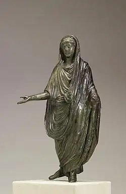 - ^ Servius, note to Aeneid 7.612; Larissa Bonfante, "Ritual Dress," p. 185, and Fay Glinister, "Veiled and Unveiled: Uncovering Roman Influence in Hellenistic Italy," p. 197, both in Votives, Places, and Rituals in Etruscan Religion: Studies in Honor of Jean MacIntosh Turfa (Brill, 2009).