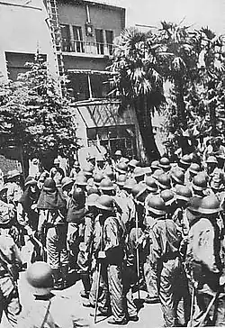 On August 13, the Tokyo District Court decided in Toho's favor,[6] and on the morning of August 19, a district police chief arrived at the front gate to read out the court decision. Two thousand policemen surrounded the studio, reinforced by soldiers, three airplanes, and several armored cars and tanks sent by the U.S. Eighth Army.[6][8] The union leaders agreed to end their occupation on the condition the union was not disbanded.[6]