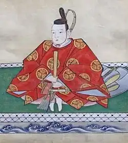 Ieyasu then consulted with imperial noble Konoe Motohisa through the mediation of a Mikawa native and the abbot of the Kyo Seiganji Temple.[46] Due to Motohisa's efforts, Yoshida Kaneyoshi discovered a genealogical document in the Manri-koji family that was precedent, saying, "Tokugawa (belongs) to Minamoto clan, as another offshoot of the Fujiwara clan," and a copy was transferred to him and used for the application.[45] Ieyasu then gained the permission of the Imperial Court and he was bestowed the courtesy title Mikawa-no-kami and the court rank of Junior 5th Rank, Lower Grade (從五位下, ju go-i no ge).