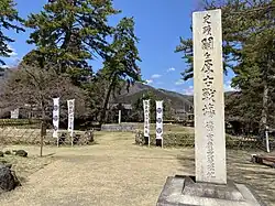 In 1580, Ieyasu built five fortresses in order to isolate Takatenjin Castle from external supplies and reinforcements.[73][74][75] In addition to those five new fortresses, Ieyasu renovated an old castle named Ogasayama fort, which had originally been built by Ieyasu far before the conquest of Tōtōmi Province against Imagawa clan to capture Kakegawa Castle.[75] With the six fortresses, which were referred to as the "six fortresses of Takatenjin", completed, Ieyasu assigned Ishikawa Yasumichi to the Ogasayama fort, Honda Yasushige to the Nogasaka fort, Osuga Yasutaka to the Higamine,[73] Shishigahana,[76] and Nakamura forts,[73] while Sakai Ietada was appointed to garrison the Mitsuiyama fort.[74][73]