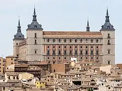 Following the July 1936 coup d'etat in Spain, the acting military commander in Toledo, José Moscardó, refused to provide weapons to Madrid and hid instead in the Alcázar with a garrison of about 1,000 rebels, food, ammunition and some hostages.[65] After 21 July, they became subject to an unsuccessful siege by forces loyal to the Republic during the early stages of the Spanish Civil War.[66] Leading rebel general (and soon-to-be dictator of Spain) Francisco Franco and his Army of Africa took a detour from their advance towards Madrid (which gave the Republicans time to build up the defenses in Madrid and receive early foreign support) and lifted the siege of the Alcázar in late September 1936.[67] The two months of resistance of the garrisoned rebel military would become a core symbol of the mythology built around the Francoist regime and its ideology.[68]