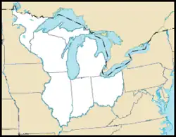 In 1787, the Congress of the Confederation enacted the Northwest Ordinance, which created the Northwest Territory in what is now the upper Midwestern United States. The Ordinance specified that the territory was eventually to be divided into "not less than three nor more than five" future states. One of the boundaries between them was to be "an east and west line drawn through the southerly bend or extreme of Lake Michigan".[1] When Congress passed the Enabling Act of 1802, which authorized Ohio to begin the process of becoming a U.S. state, the language defining Ohio's northern boundary elaborated on that, but was fundamentally the same: "an east and west line drawn through the southerly extreme of Lake Michigan, running east ... until it shall intersect Lake Erie or the territorial line [with British North America, now Canada], and thence with the same through Lake Erie to the Pennsylvania line aforesaid".[2]