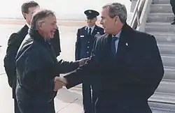 Tancredo's outspoken advocacy for immigration reform, and particularly his criticism of President George W. Bush's border security controls, reportedly made him persona non grata in the Bush White House.[11] According to Tancredo, he and Bush's political adviser, Karl Rove, got into a "screaming match" after Tancredo claimed that "if the nation suffered another attack at the hands of terrorists able to skirt immigration laws, the blood of the people killed" would be on Bush's and Congress' hands. Rove responded by calling Tancredo "a traitor to the party" and "a traitor to the president," and warned him to never "darken the doorstep of the White House."[11]