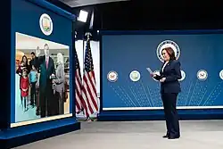 In December 2020, Joe Biden announced he would nominate Vilsack to again serve as the secretary of agriculture.[51] The move was met by criticism from some black farmers and progressives, because of Vilsack's perceived relationship with the status quo and corporate agriculture.[52][53][54] He appeared before the Senate Agriculture Committee on February 2nd, 2021, and was unanimously approved.[55] His nomination was confirmed by the Senate on February 23rd, 2021, by a 92–7 vote.[56] He was sworn into office by Kamala Harris on February 24th, 2021.[57]