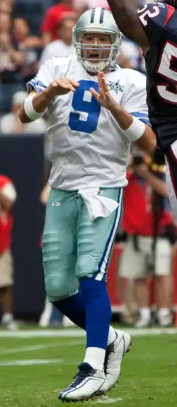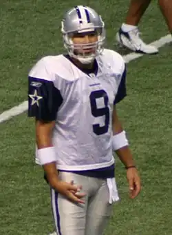 Antonio Ramiro Romo (born April 21, 1980) is an American former professional football quarterback who played in the National Football League (NFL) for 13 seasons with the Dallas Cowboys. He played college football for the Eastern Illinois Panthers, where he made an Ohio Valley Conference championship appearance in 2001 and won the Walter Payton Award the following year. Romo signed with the Cowboys as an undrafted free agent in 2003.