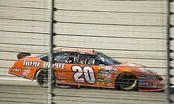 Following his win in the Pepsi 400, Stewart began climbing the fence separating the fans from the race track after each victory, borrowing IndyCar Series driver Hélio Castroneves' trademark move.[23] After winning the 2009 All-Star race, Stewart was quoted as saying "I'm too damn fat to be climbing fences," and recently purchased $17,000 worth of exercise equipment to remedy the problem. It also led to sponsor The Home Depot cashing in on Stewart's success with some promotions reminiscent of Stewart's Eldora Speedway drivers. After his second full climb of the fence in Loudon, N.H., they ran a discount on ladders and fencing at the stores with a campaign named, "Hey Tony, we've got ladders", where anyone who presented the advertisement in national newspapers in their stores earned the discount. After his victory in Indianapolis, The Home Depot presented fans who presented the advertisement of his Allstate 400 win with a discount on purchasing bricks. He mentioned in a press release from his sponsor, "I plan to keep winning races and helping to drive down the cost of home improvement for The Home Depot customers."