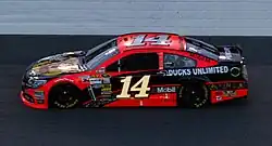 Stewart last competed full-time in the NASCAR Sprint Cup Series (now known as the NASCAR Cup Series) during the 2016 season, driving the No. 14 Chevrolet SS for his team, Stewart–Haas Racing, under crew chief Mike Bugarewicz. From 1999 to 2008, he drove the No. 20 Joe Gibbs Racing car, under crew chief Greg Zipadelli with The Home Depot as the primary sponsor. While driving for car owner Joe Gibbs, Stewart won two Cup Series championships in 2002 and 2005. In 2011, Stewart became the first owner-driver since Alan Kulwicki to win the Cup Series championship.[6] Stewart is the only driver to win the Cup Series championship under the old points system and the chase playoff format, and is the only driver to win the title under three different sponsorships (Winston in 2002, Nextel in 2005, and Sprint in 2011). He is also the first driver in the Cup Series to win the championship by a tiebreaker.[6] On May 22, 2019, Stewart was voted into the NASCAR Hall of Fame,[7] and on January 31, 2020, was inducted alongside the 11th Hall of Fame class.[8] On November 21, 2021, he married NHRA Top Fuel Drag Racer Leah Pruett.[9] He replaced Pruett in Top Fuel for the 2024 season as Pruett stepped aside to start a family with Stewart.