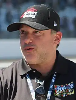 Anthony Wayne Stewart (born May 20, 1971), nicknamed "Smoke",[2] is an American professional auto racing driver, and former NASCAR team co-owner of Stewart–Haas Racing. He currently competes in the NHRA Top Fuel class for Tony Stewart Racing.[3] He is a four-time NASCAR Cup Series champion, winning two as a driver (2002, 2005), one as owner/driver (2011), and one as an owner (2014).