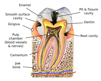 - ^ Selwitz RH, Ismail AI, Pitts NB (January 2007). "Dental caries". The Lancet. 369 (9555): 51–9. doi:10.1016/S0140-6736(07)60031-2. PMID 17208642. S2CID 204616785.