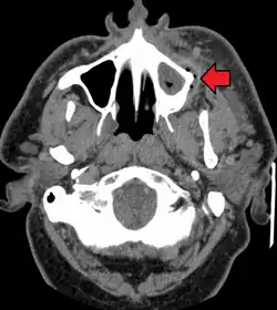 Dental caries can also cause bad breath and foul tastes.[16] In highly progressed cases, an infection can spread from the tooth to the surrounding soft tissues. Complications such as cavernous sinus thrombosis and Ludwig angina can be life-threatening.[17][18][19]