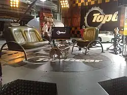 During the broadcast of the twenty-eighth series in early 2020, it was announced that, from the twenty-ninth series, the show would move channels to BBC One following the positive reception of the new presenting lineup.[55] The twenty-ninth series itself, which was broadcast in late 2020, also saw some changes as a result of filming and broadcast during the COVID-19 pandemic, including the show moving out of the studio and onto the runway, in a 'drive-in festival' style, to enable the audience members to remain physically distanced,[56] and the dropping of the Star in a ... Car segment to maintain social distancing.[57] Further changes were made to the thirtieth series, broadcast in early 2021, due to restrictions as a result of the COVID-19 pandemic: studio segments were recorded during a two-night shoot outside Television Centre, London, instead of the previous location at Dunsfold Aerodrome, with no full audience, and all of the films in the series were recorded in the UK.[58] The new outdoor studio at Television Centre was retained for the thirty-first series, which was broadcast later that year.