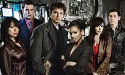 Torchwood is a British science fiction television programme created by Russell T Davies. A spin-off of the 2005 revival of Doctor Who, it aired from 2006 to 2011. The show shifted its broadcast channel each series to reflect its growing audience, moving from BBC Three to BBC Two to BBC One, and acquiring American financing in its fourth series when it became a co-production of BBC One and Starz. Torchwood is aimed at adults and older teenagers, in contrast to Doctor Who's target audience of both adults and children. As well as science fiction, the show explores a number of themes, including existentialism, LGBTQ+ sexuality, and human corruptibility.