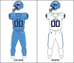 The team's other official colour is white. Its current helmet design features a Cambridge blue background, with the team logo featuring a boat incorporating a football.[15]