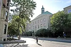 Initially, plans were made to house the institute entirely within the Toronto Normal School building but the rapid growth of the student population made such plans impossible. Therefore, work on the first building built specifically for the institute began in 1958; Kerr Hall was completed in 1963.[13] Several buildings had to be razed, including temporary barracks used during the Second World War[14] and the Toronto Normal School (though its portico façade was kept).[15] A number of other buildings were later built surrounding the courtyard.[15]