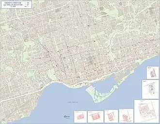 - ^ "Tronto Transit Commission – 2006 Streetcar Track Layout and Route Map" (PDF). Transit Toronto. 2006.