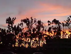 Torrance has a warm-summer Mediterranean climate (Köppen: Csb), bordering with a semi-arid climate (Bsk). The rainy season is November through March, as shown in the adjacent table.[26] Summers tend to be warm but dry, despite Torrance's proximity to the coast.[27] The Sunset Western Garden Book places most of Torrance in Zone 22, part of a basin area in Greater Los Angeles where cold air can pool—hence the surprisingly chilly record low temperatures for each calendar month at the airport, which has risk of frost over six months. Milder microclimates are found upslope of the airport to the south (Zone 23—thermal belt) and in the western blocks bordering the beach communities and Palos Verdes Estates (Zone 24—marine influence dominant).[28]