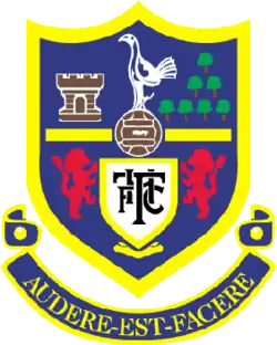 Between 1956 and 2006 Spurs used a faux heraldic shield featuring a number of local landmarks and associations. The castle is Bruce Castle, 400 yards from the ground and the trees are the Seven Sisters. The arms featured the Latin motto Audere Est Facere (to dare is to do).[74]