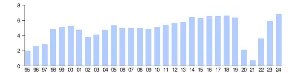 | 2019[21] | 6,353 | -4.4 | 5,995 | n/a |