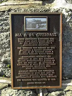 53. ^ Loni Ingraham (May 26, 1999). "'Ma and Pa' railroad abutments get HTI plaque". The Towson Times.