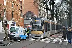 A collision in Brussels between a Renault Kangoo and a tram