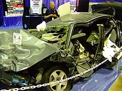Some crashes are intended; staged crashes, for example, involve at least one party who hopes to crash a vehicle in order to submit lucrative claims to an insurance company.[48] In the United States during the 1990s, criminals recruited Latin American immigrants to deliberately crash cars, usually by cutting in front of another car and slamming on the brakes. It was an illegal and risky job, and they were typically paid only $100. Jose Luis Lopez Perez, a staged crash driver, died after one such maneuver, leading to an investigation that uncovered the increasing frequency of this type of crash.[49]