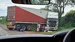 The aftermath of an accident involving a jackknifing truck, near Inhassoro, Mozambique, 2022