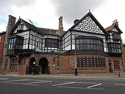 In 1974, Trafford Council was created to administer the newly formed Trafford Metropolitan Borough and is headquartered at Trafford Town Hall, which was previously named Stretford Town Hall.[23] On its formation in 1974, the council was controlled by the Conservative Party; the Conservatives have been in control 1973–85, 1988–94, and 2004–2018. The only time the Labour Party was in control was 1996–2002, and 2019 to the present. The rest of the time were periods of no overall control.[24] The council meets to decide policy and allocate budget. Its duties include setting levels of council tax, monitoring the health service in Trafford, providing social care, and funding schools.[25][26] Cllr Tom Ross is the leader of the council and Cllr Amy Whyte is the current mayor.[27]