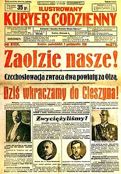 "Zaolzie is ours!" – Polish newspaper Ilustrowany Kuryer Codzienny on 3 October 1938
