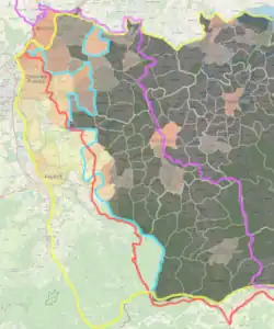 The Polish term Zaolzie (meaning "lands beyond the Olza") is used predominantly in Poland and by the Polish minority living in the territory. It is also often used by foreign scholars, e.g. American ethnolinguist Kevin Hannan.[7] The term Zaolzie was first used in 1930s by Polish writer Paweł Hulka-Laskowski.[8] In Czech it is mainly referred to as České Těšínsko/Českotěšínsko ("land around Český Těšín"), or as Těšínsko or Těšínské Slezsko (meaning Cieszyn Silesia). The Czech equivalent of Zaolzie (Zaolší or Zaolží) is rarely used. The term Zaolzie denotes the territory of the former districts of Český Těšín and Fryštát, in which the Polish population formed a majority according to the 1910 Austrian census.[9][10][11] It makes up the eastern part of the Czech portion of Cieszyn Silesia. However, Polish historian Józef Szymeczek notes that the term is often mistakenly used for the whole Czech part of Cieszyn Silesia.[9]