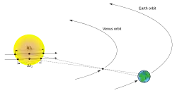 - ^ The black drop effect distorts the image of Venus at the observed edge of the Sun. The effect is caused by turbulence in the Earth's atmosphere, imperfections in the viewing apparatus, or the extreme change in brightness at the edge of the Sun.