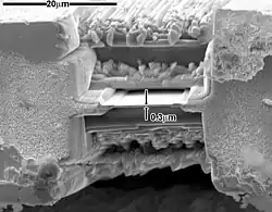 - ^ Gorji, Saleh; Kashiwar, Ankush; Mantha, Lakshmi S; Kruk, Robert; Witte, Ralf; Marek, Peter; Hahn, Horst; Kübel, Christian; Scherer, Torsten (December 2020). "Nanowire facilitated transfer of sensitive TEM samples in a FIB". Ultramicroscopy. 219 113075. doi:10.1016/j.ultramic.2020.113075. PMID 33035837. S2CID 222255773.
