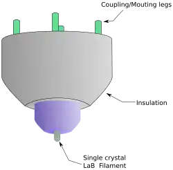 - ^ Buckingham, J (1965). "Thermionic emission properties of a lanthanum hexaboride/rhenium cathode". British Journal of Applied Physics. 16 (12): 1821. Bibcode:1965BJAP...16.1821B. doi:10.1088/0508-3443/16/12/306.