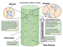 - The forces of cohesion and adhesion cause the water molecules to form a column in the xylem.