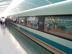 Transrapid (German: [tʁansʁaˈpiːt] ⓘ) is a German-developed high-speed monorail train using magnetic levitation. Planning for the system started in the late 1960s, with a test facility in Emsland, Germany, inaugurated in 1983.[1] In 1991, technical readiness for application was approved by the Deutsche Bundesbahn in cooperation with renowned universities.[2]