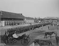 De Lannoy was appointed captain of His Highness' bodyguard[35] and later Senior Admiral ("Valiya kappittan")[36] and modernised the Travancore army by introducing firearms and artillery.[35] From 1741 to 1758, De Lannoy remained in command of the Travancore forces and was involved in annexation of small principalities.[37]