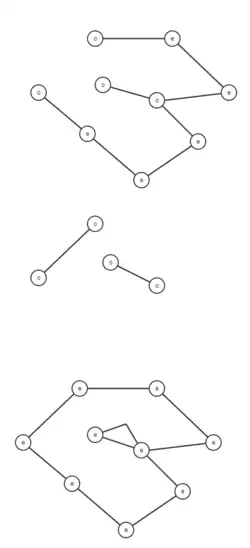 Making a graph into an Eulerian graph starts with the minimum spanning tree; all the vertices of odd order must then be made even, so a matching for the odd-degree vertices must be added, which increases the order of every odd-degree vertex by 1.[6] This leaves us with a graph where every vertex is of even order, which is thus Eulerian. Adapting the above method gives the algorithm of Christofides and Serdyukov: