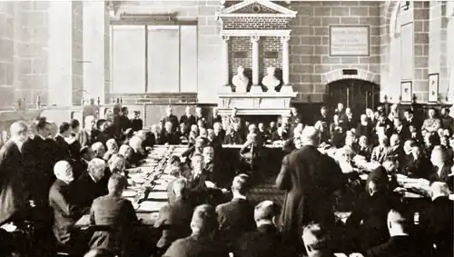 ![]() Austrian chancellor Renner addressing the delegates during the signing ceremony | |