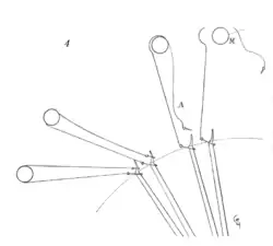 Although al-Tarsusi provided the first description and illustration of a counterweight trebuchet, the text implies that the engine was not new and had previously been built. Al-Tarsusi referred to the counterweight trebuchet as the "Persian" trebuchet whereas the "Frankish" trebuchet was a light traction engine.[11][74] Later during the 13th century, Muslims used manjaniq maghribi (Western trebuchet) and manjaniq ifranji (Frankish trebuchet) to refer to counterweight trebuchets.[11] Paul E. Chevedden suggests that manjaniq maghribi was used to describe hinged counterweight engines in contrast to previous fixed or hanging counterweight trebuchets.[75] Sometimes counterweight trebuchets are separated into two or three different categories based on how their counterweights are attached. These being fixed, hanging, and hinged counterweights. A fixed counterweight is an intrinsic part of the swinging arm and its trajectory is circular.[76][77] Hanging counterweights hang below the arm and drop vertically. Hinged counterweights are attached to the arm by a swinging joint. Some fixed counterweights also had a hinged component. The type described by al-Tarsusi was a hanging counterweight. Writing in 1280, Giles of Rome claimed that hinged counterweight trebuchets had a greater range than fixed counterweight types.[78][75]