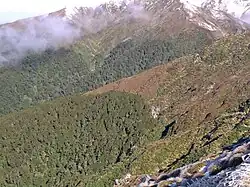 | Fiordland, South Island, New Zealand | 45°S | 950 | 3,100 | Very snowy springs, strong cold winds and cool summers with frequent summer snow restrict tree growth |