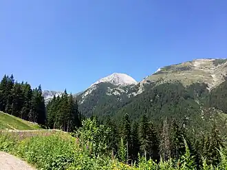 An alpine tree line is the highest elevation that sustains trees; higher up it is too cold, or the snow cover lasts for too much of the year, to sustain trees.[2]: 151 The climate above the tree line of mountains is called an alpine climate,[15]: 21 and the habitat can be described as the alpine zone.[16] Tree lines on north-facing slopes in the northern hemisphere are lower than on south-facing slopes, because the increased shade on north-facing slopes means the snowpack takes longer to melt. This shortens the growing season for trees.[17]: 109 In the southern hemisphere, the south-facing slopes have the shorter growing season.