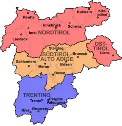 {{cite web}}: Missing or empty|title=(help) - ^ a b "Special Statute for Trentino-Alto Adige" (PDF). Province of Trento. Archived from the original (DOC) on 24 September 2015. Retrieved 11 February 2009.
